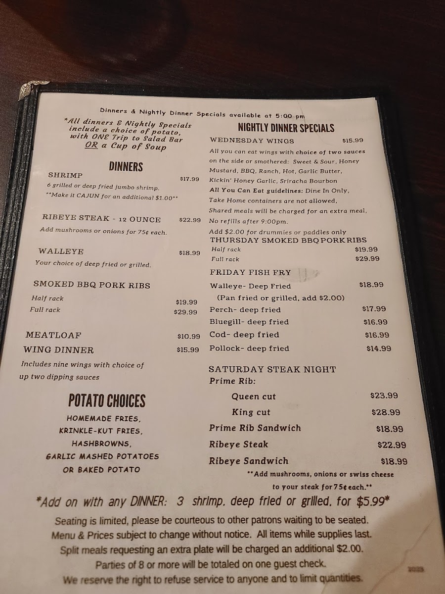 Welcome to Pine Creek Pit Stop, your go-to destination for hearty meals in Ashland, WI. Nestled at 68690 Pine Creek Rd, this cozy eatery captures the essence of comfort food. The menu boasts a delightful range of dishes, highlighted by their renowned prime rib dinner, praised for its melt-in-your-mouth tenderness. Vegetarian options abound at the inviting salad bar, making it suitable for all palates.