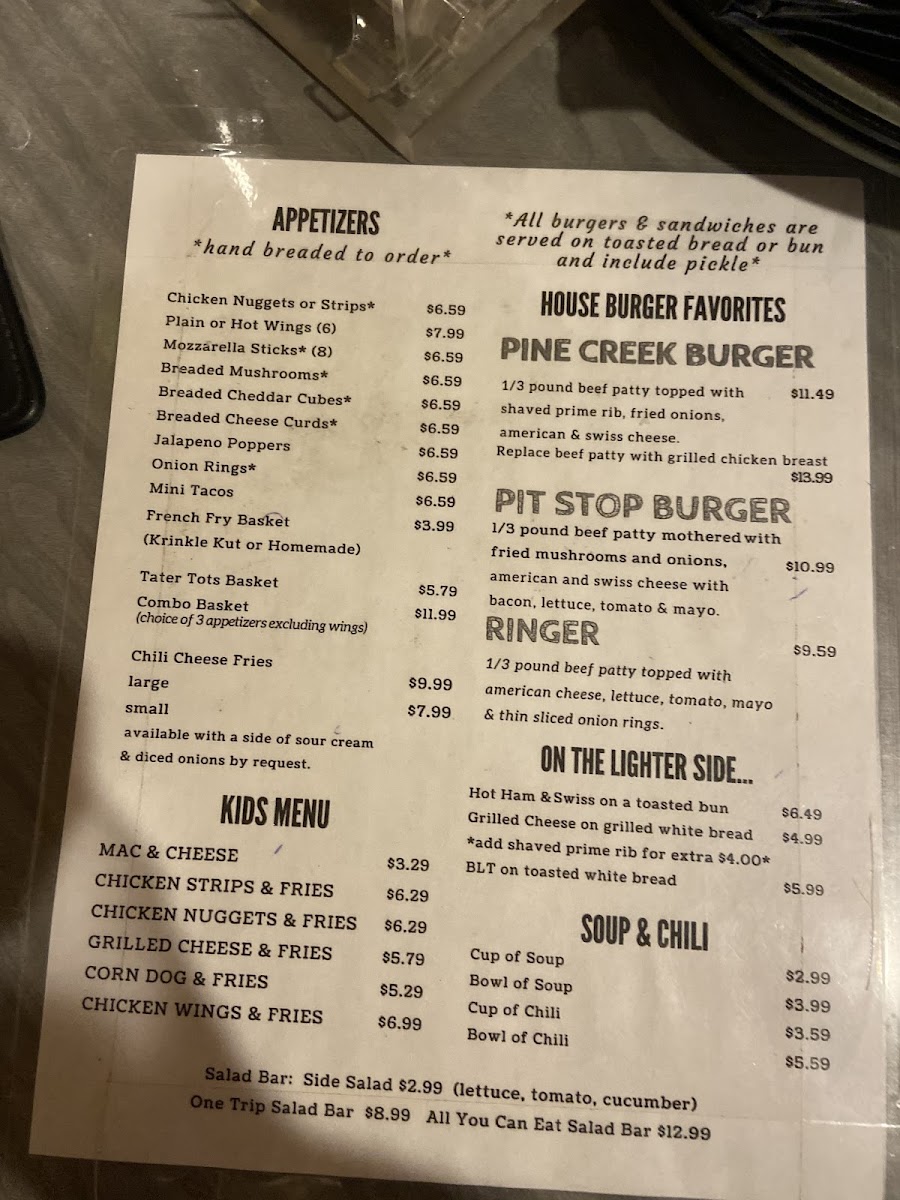 The friendly staff adds to the warm atmosphere, ensuring every visit feels like coming home. Whether you’re here for a special occasion or a casual meal, Pine Creek Pit Stop guarantees satisfaction with each bite.